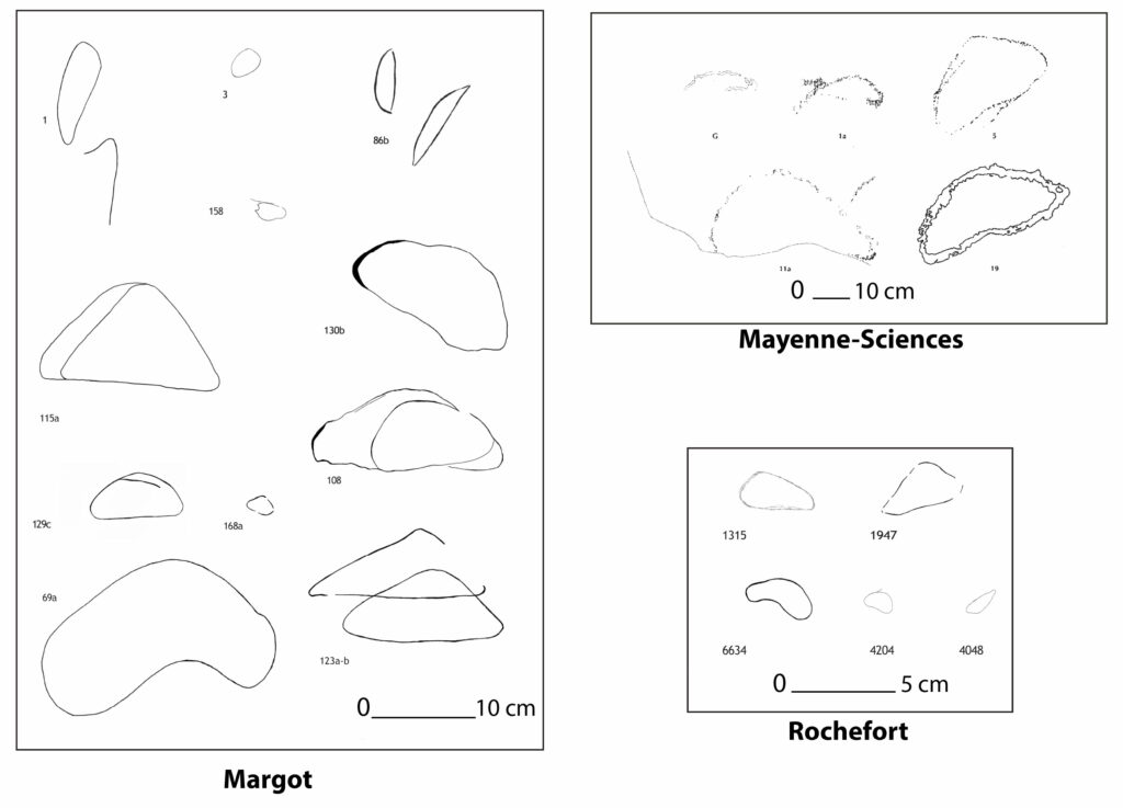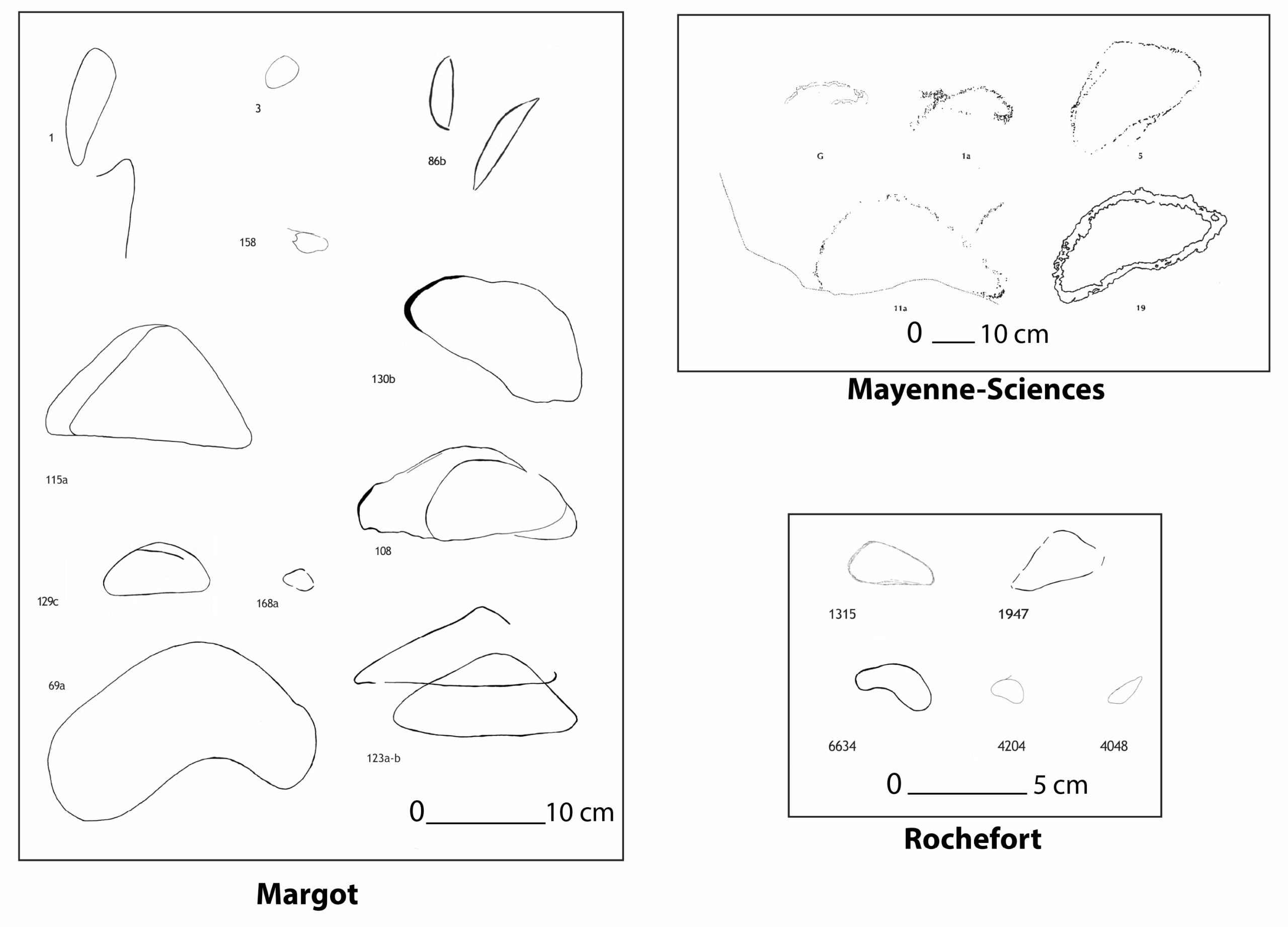 Parmi les résultats marquants, l’analyse hyperspectrale a permis d’identifier un nouveau signe triangulaire aux bords arrondis, jusque-là invisible à l’œil nu entre deux ensembles de traits. Ce type de signe n’est pas isolé : on en compte déjà 25 dans les grottes très proches de Margot et de Mayenne‑Sciences, et on en connaît aussi sur quelques plaquettes de la grotte Rochefort.