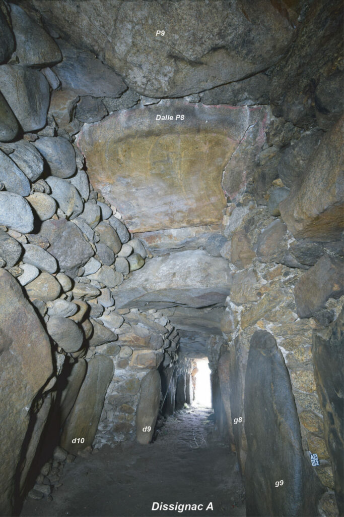 Les signes néolithiques gravés sur une dalle assurant une part du plafond dans la chambre funéraire A de Dissignac (Saint-Nazaire, Loire Atlantique), forment la matière de cette causerie. Bénéficiant des opérations de fouilles archéologiques menées entre 1970 et 1981 par le SRA des Pays de Loire (dir. J. L’Helgouac’h), simultanément à des travaux de restauration, la dalle P8 est replacée dans un contexte architectural et chrono-culturel aussi précis et pertinent que possible. De surcroît, la numérisation de l’ensemble du monument permet de travailler sur une imagerie renouvelée autorisant de meilleurs rendus des plans et des élévations.
