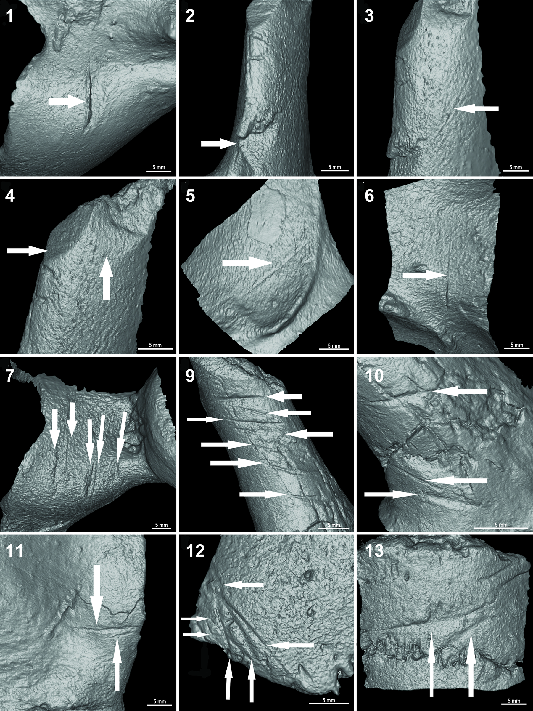 Les restes fossiles appartiennent à ceux d’un glyptodonte, un parent géant des tatous, nommé Neosclerocalyptus . L’analyse statistique révèle que les marques de coupe sur certaines parties du bassin, de la queue et de l’armure corporelle sont cohérentes avec les marques faites par des outils en pierre. Élément supplémentaire de preuve, l’emplacement de ces marques est cohérent avec une pratique de décharnement ciblant les zones de chair dense.