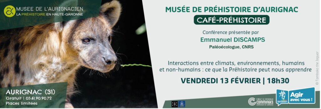 Emmanuel DISCAMPS, Archéozoologue et Paléoécologue au CNRS, présente une conférence intitulée Interactions entre climats, environnements, humains et non-humains : ce que la Préhistoire peut nous apprendre.