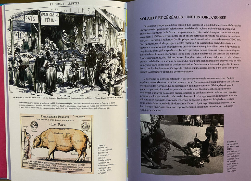 Richement illustré, le livre se lit comme une promenade érudite, ponctuée d’anecdotes révélatrices — du pauvre vison dont la fourrure a été une preuve d’amour entre humains à la la chatte Félicette envoyée dans l’espace à la reconnaissance héroïque d’un pigeon, en passant par l’a stupéfiante « histoire du pavot à l’opium ». Ces récits, loin d’être anecdotiques, interrogent notre rapport affectif, symbolique et utilitaire au vivant, et posent en filigrane une question essentielle : la domestication est-elle réversible ?