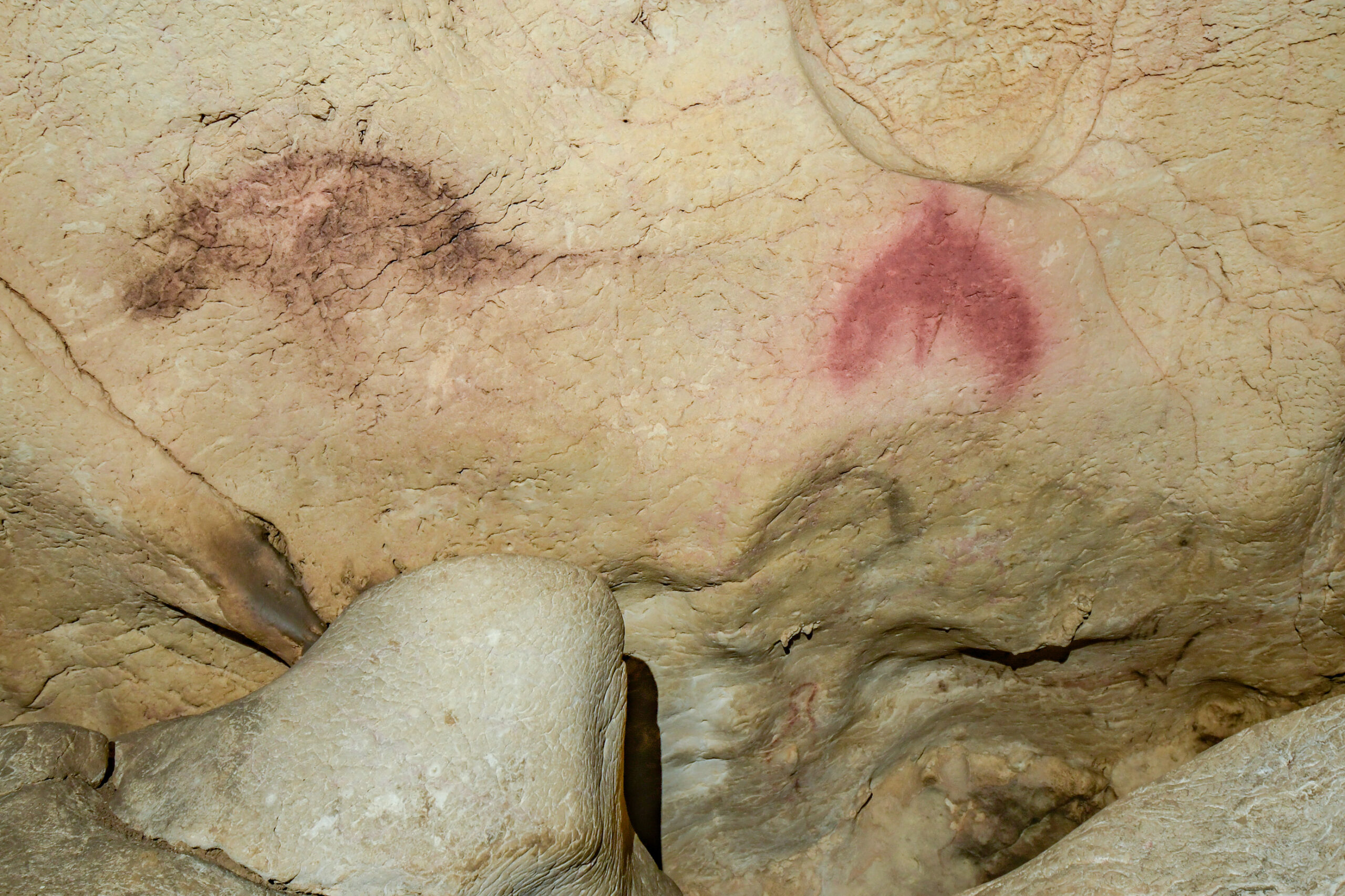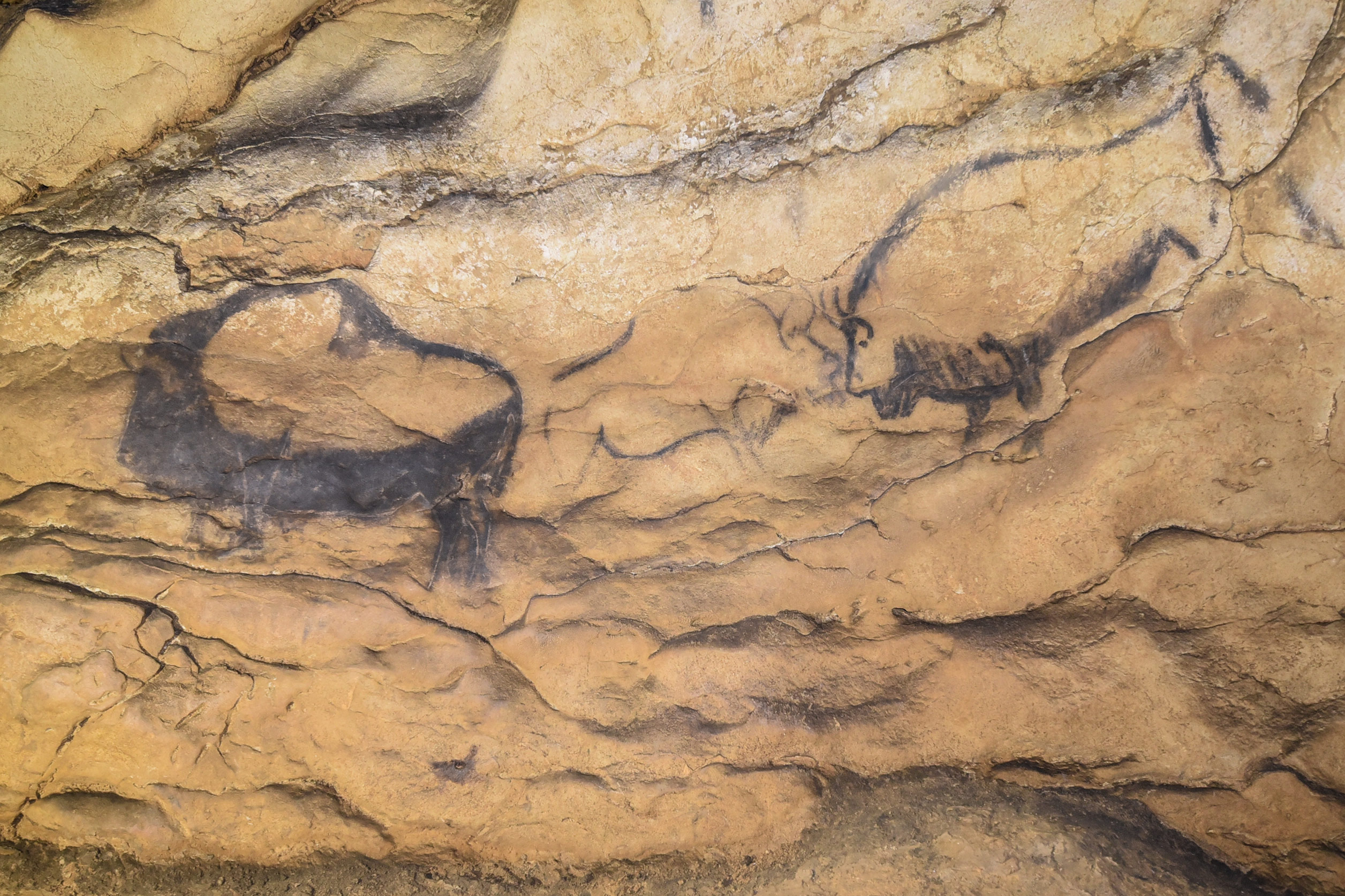 Plusieurs dizaines de bisons et chevaux côtoient des représentations humaines, des poissons ainsi que des signes peints, dont certains très énigmatiques et uniques dans l’Art préhistorique occidental.