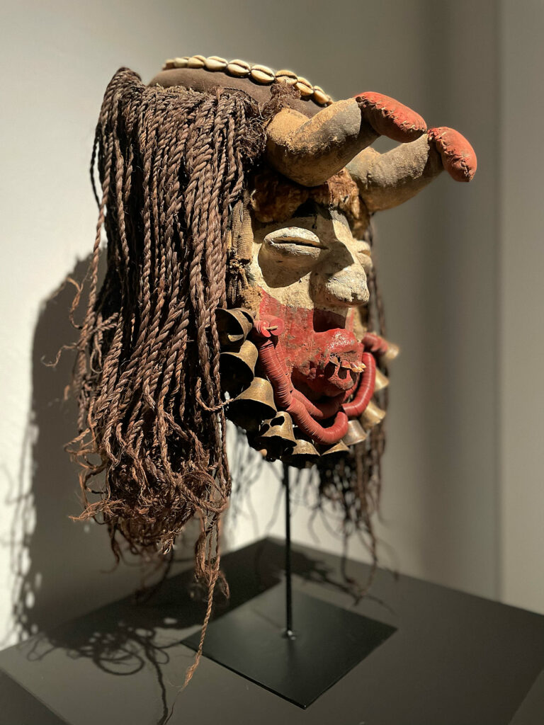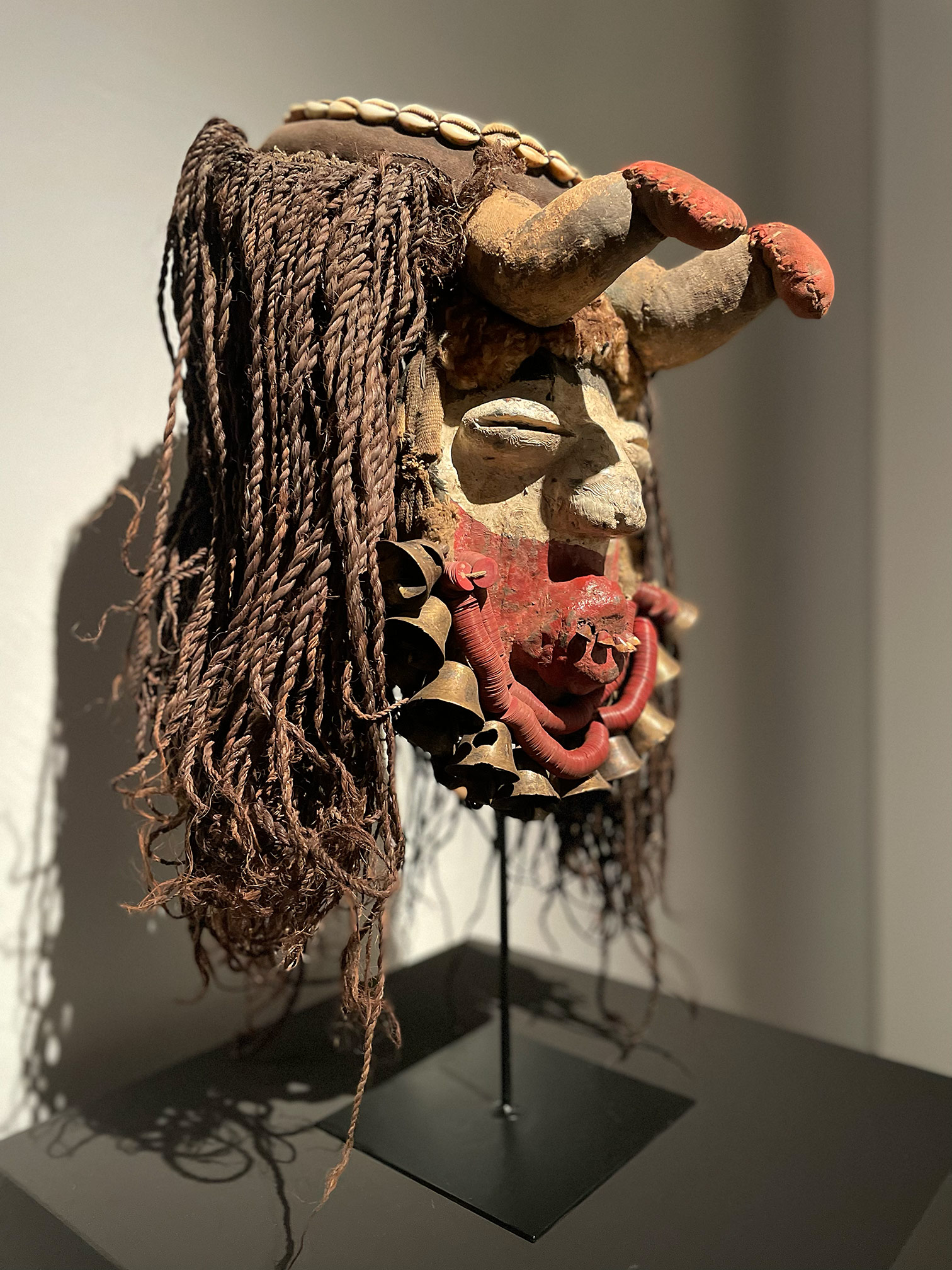 Le masque permet l’effacement de soi au profit d’un autre être, souvent surnaturel, et rend possible le passage d’un état à un autre. Objet à la fois usuel et sacré, il s’anime grâce à des matières rituelles qui nourrissent l’entité qu’il incarne. Par ses formes figuratives ou abstraites, il exprime des forces invisibles, parfois redoutables. Spectaculaire et dynamique, le masque capte l’attention et agit comme une révélation de l’invisible. Réservé aux initiés, il implique une transformation profonde de celui qui le porte.