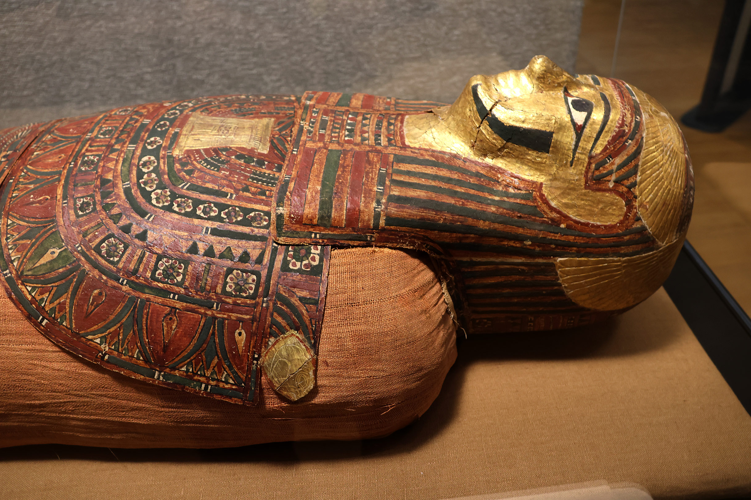 Ce processus, hautement codifié, mobilise des spécialistes des pratiques funéraires et s’inscrit dans un ensemble de gestes et de rituels à forte valeur symbolique. À travers la présentation d’objets funéraires, d’illustrations et de dispositifs didactiques, l’exposition met en lumière la diversité des techniques et des traditions de momification observées dans différentes cultures et périodes historiques.