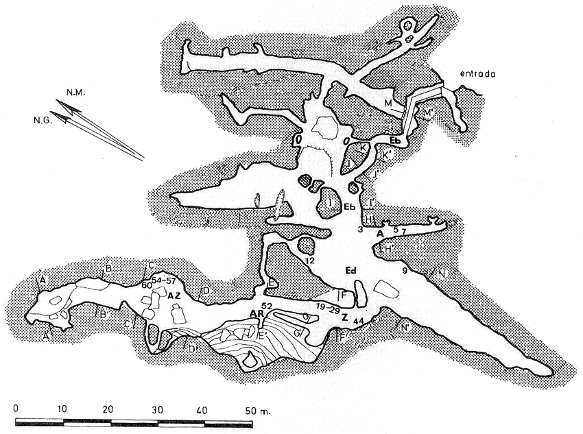 La grotte d’Ekain présente un réseau souterrain typique des massifs calcaires, avec une succession de galeries étroites et de salles plus vastes. Son entrée est discrète, en hauteur par rapport à la vallée, et mène à un couloir qui s’enfonce dans la roche. À l’intérieur, plusieurs salles, dont la célèbre « Salle des Chevaux », abritent les peintures pariétales. La cavité suit une forme légèrement sinueuse qui protège les parois ornées de la lumière et des intempéries. Cette configuration naturelle a contribué à la conservation exceptionnelle des œuvres préhistoriques.