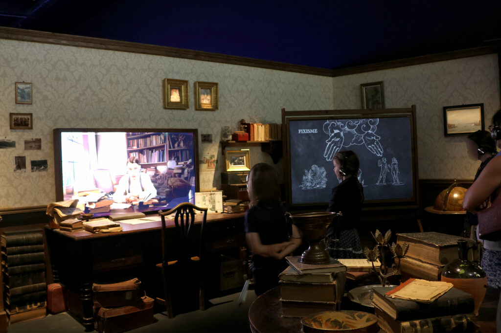 Entrons dans la première salle ou Jean Bouyssonie vous présente les débats et les discussions de l’époque sur les origines de l’homme, les théories de l’évolution. Les grands scientifiques de l’époque sont Charles Darwin, Georges Cuvier, Jean-Baptiste Lamarck… Chacun pousse ses positions : transformisme, fixisme, evolutionnisme… Tout est remis en cause, l’âge de la terre, les premiers hommes… le débat fait rage entre les croyances religieuses et les premières découvertes et le climat n’est pas très ouvert… les religieux restent sur leurs positions…