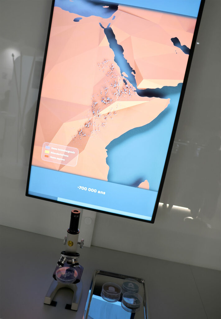 Des bornes interactives (quizz), des écrans grand format, des microscopes, des maquettes et des ossements de différentes espèces d’hominines vous permettons de répondre aux questions que vous vous posez certainement…