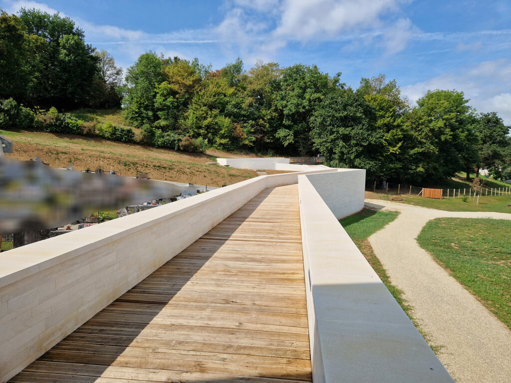 A partir du bâtiment vous pouvez maintenant accéder au gisement préhistorique original de la Bouffa Bonneval. Une passerelle s’élance vers le haut de la colline, mais faites attention au risque de glissade sur la dernière partie. Le gisement était jusqu’à présent masqué à 100 mètres derrière un grillage. La nouvelle muséographie le rend accessible par la passerelle.
