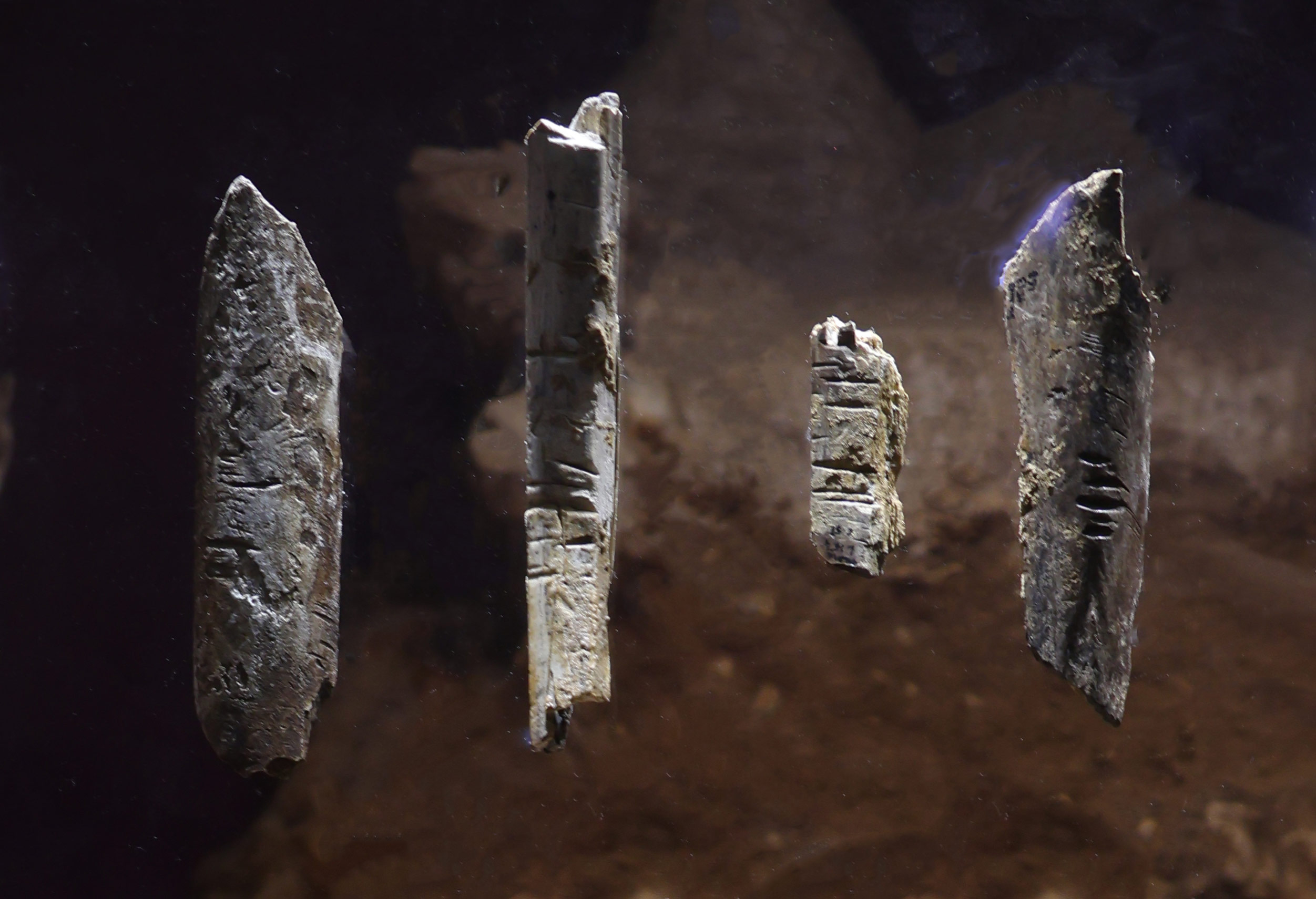 Côtes de renne incisées – Magdalénien – Grotte du Placard – Musée d’Angoulème – Photo Kroko pour Hominides.com