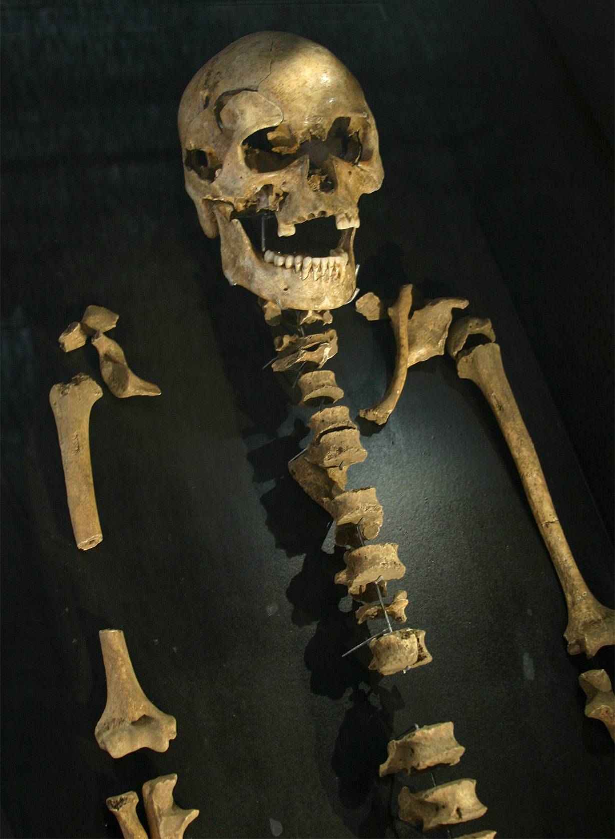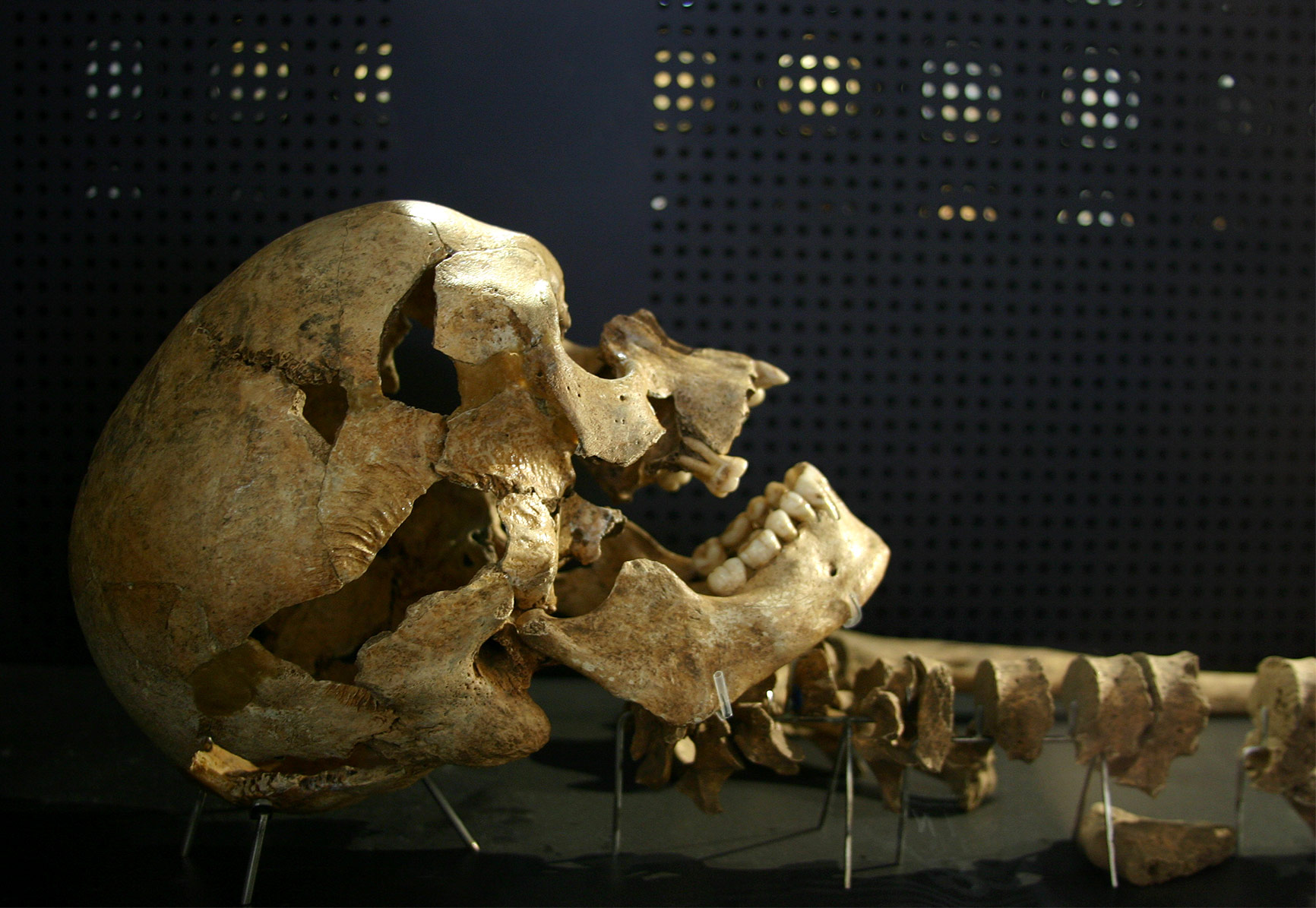 Le squelette du Roc-de-Cave appartient à un(e) adolescent(e) âgé(e) de 15 à 18 ans, de sexe indéterminé, de stature moyenne (1,50 mètre), dont le corps était recouvert d’ocre.